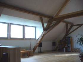 Umbaujahr Bauweise D�mmung Dach Dach Fenster Boden Wandoberfl�chen W�rmeerzeugung Spezielles | 2006 bestehendes Bruchsteinmauerwerk Zellulose Tonziegel Holzrahmenfenster Massivholz - Riemen Eiche und Fichte Innenputz mineralisch, mineralische Farbanstriche St�ckholzofen mit Anstellherd und Kaust, Heizk�rper Pflanzenkl�ranlage Wasseraufbereitungsanlage mit Keramikfiltersystem Bauen ausserhalb Bauzone |