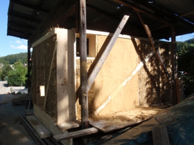 Baujahr Bauweise D�mmung Fassade Dach Fenster Boden Wandoberfl�chen W�rmeerzeugung Spezielles | 2012 / 2013 Holzst�nderwand Strohballen Lehmgrundputz Sinus- Wellblech Holzrahmenfenster Massivholz - Riemen Fichte Lehmgrundputz St�ckholzofen Stroh-/ Lehmbau: CO2 gebunden, Nachhaltiges Bauen, bestes Raumklima Lehm und Stroh aus der Region |