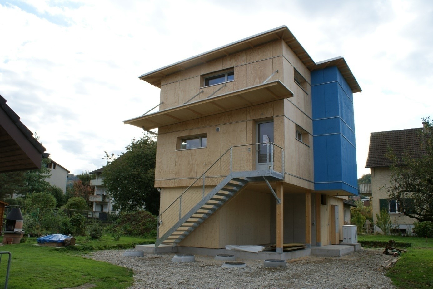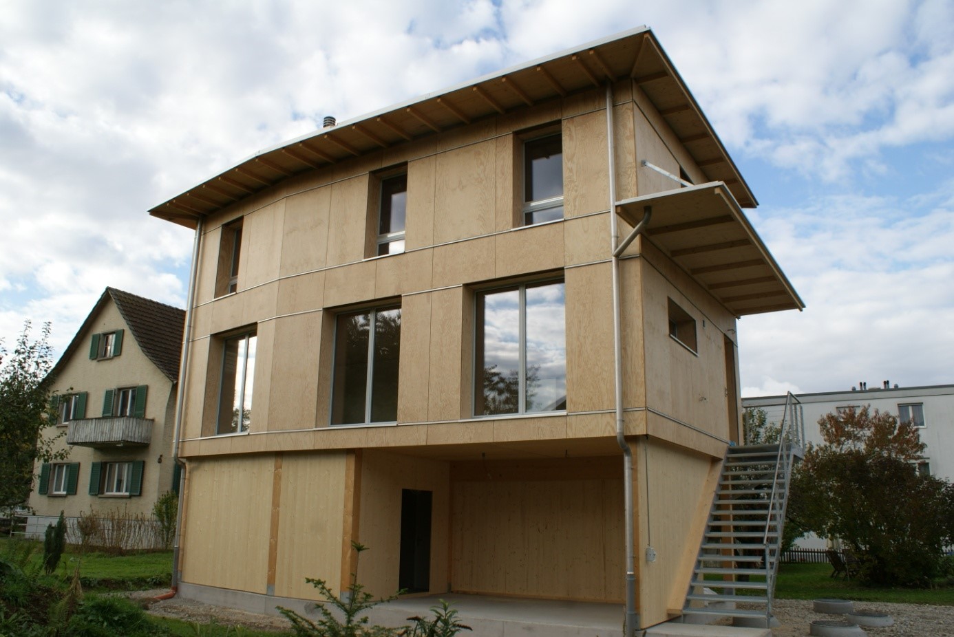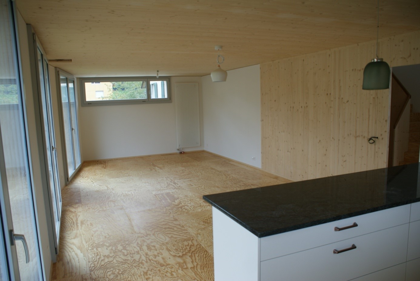 2017 Ortbeton / Holzelementbau nach baubiologischen Grundsätzen Zellulose Seekiefer Sperrholzplatten Extensiv begrünt Holzrahmenfenster Seekiefer Sperrholzplatten Wärmepumpe Wohnkubus in die Höhe geboben EG zu späterem Zeitpunkt ausbaubar |