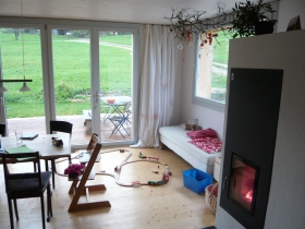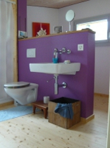 Baujahr Bauweise D�mmung Fassade Dach Fenster Boden Innent�ren Wandoberfl�chen W�rmeerzeugung Brauchwarmwasser Spezielles | 2008 / 2009 Ortbeton / Holzelementbau nach baubiologischen Grunds�tzen Holzhobelspan Fichte Eternit Holzrahmenfenster Massivholz - Riemen Fichte Massivholz - Blockrahmen Kalkputz St�ckholzheizung mit W�rmetauscher im Wohnraum Solaranlage Holzdusche |