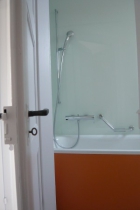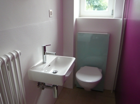 Baujahr Bauweise D�mmung Fenster Boden Wandoberfl�chen Spezielles | 2011 sorgf�ltiger und r�cksichtsvoller Umbau nach baubiologischen Grunds�tzen Zellulose und Holzfaserplatten Holzrahmenfenster Massivholz - Riemen (bestehende und neu), Solnhofer Natursteinplatten Kalkputz, Tapete mit mineralischen Anstrichen Neuklassizistische Reihenhaussiedlung Baujahr 1918 |